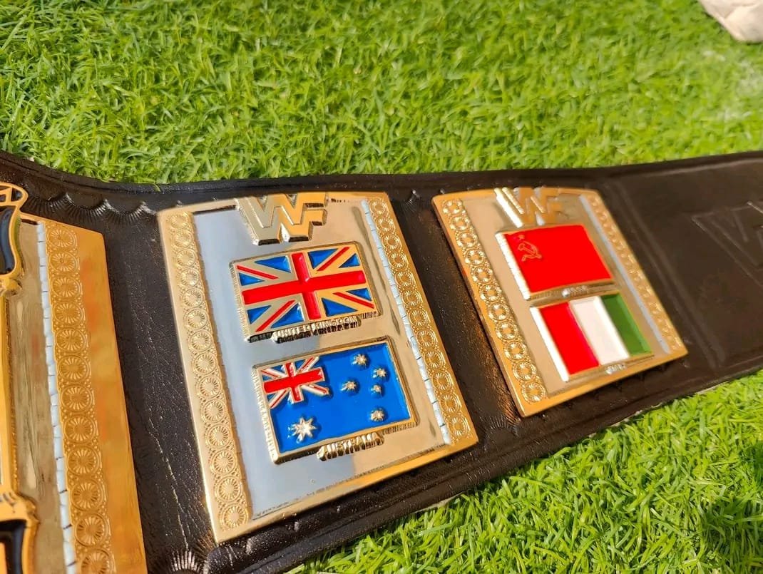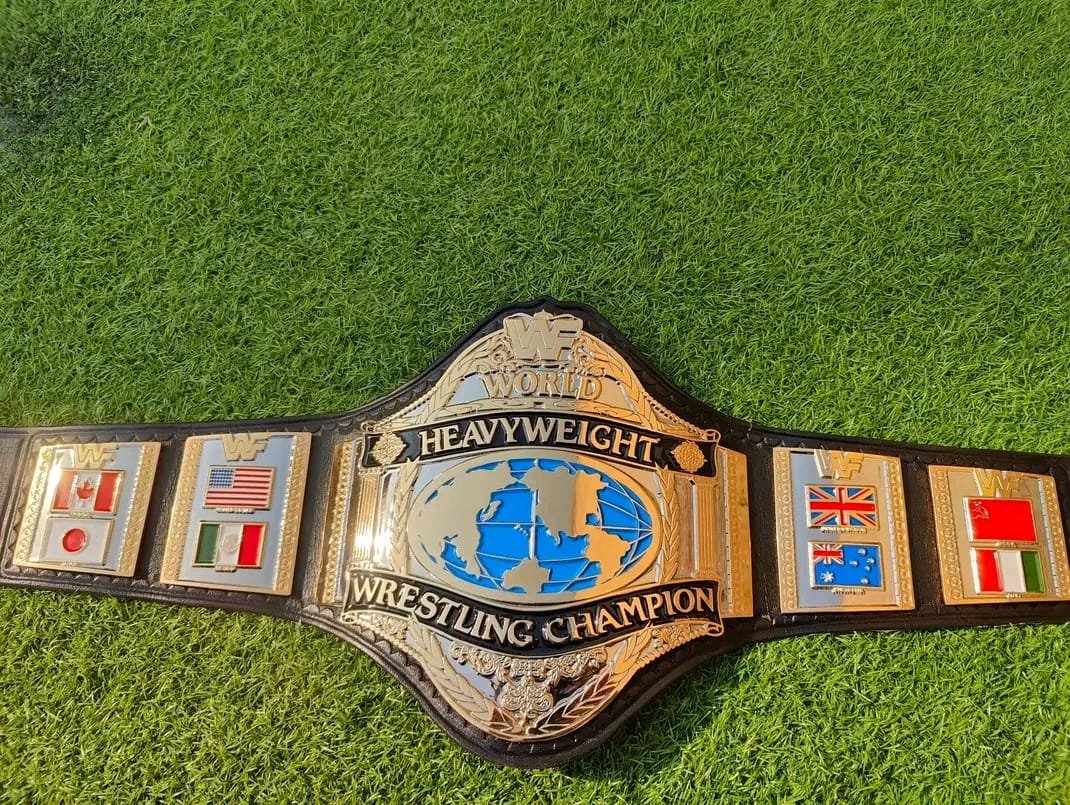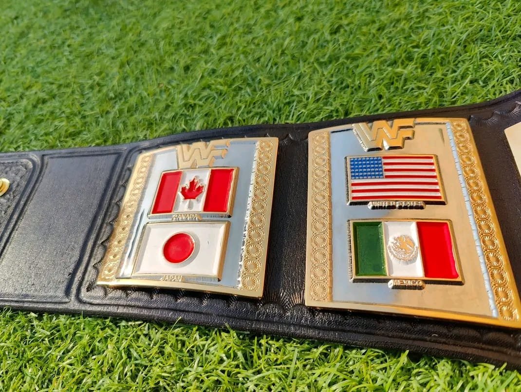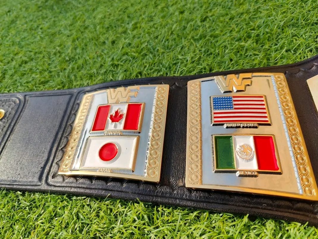 • Classic ’86 Design: This specific design features the traditional “Hogan Style” layout, including the international flags (USA, Canada, Mexico, Japan) that signify a true World Champion.