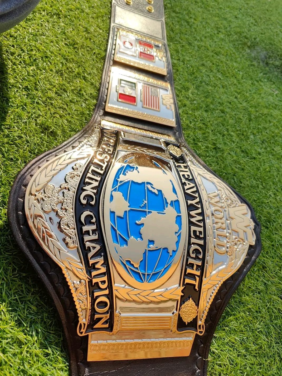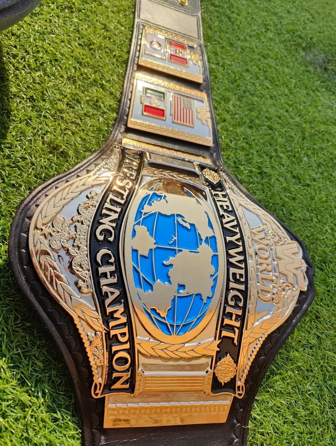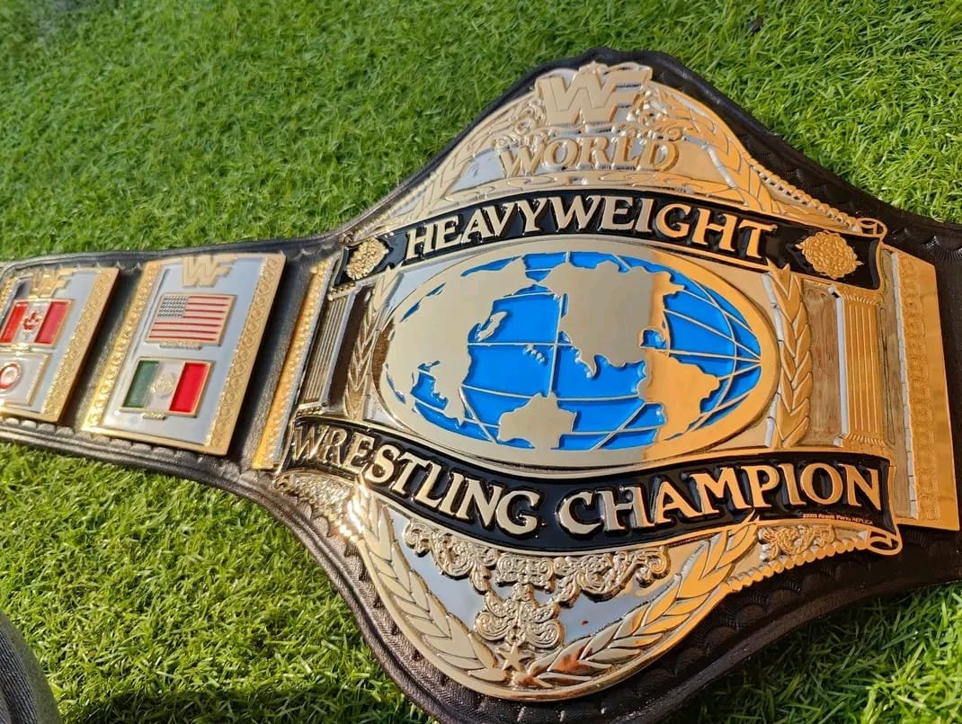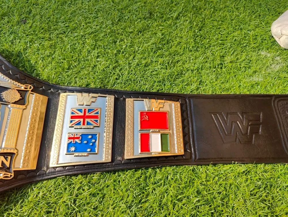 • Classic ’86 Design: This specific design features the traditional “Hogan Style” layout, including the international flags (USA, Canada, Mexico, Japan) that signify a true World Champion.